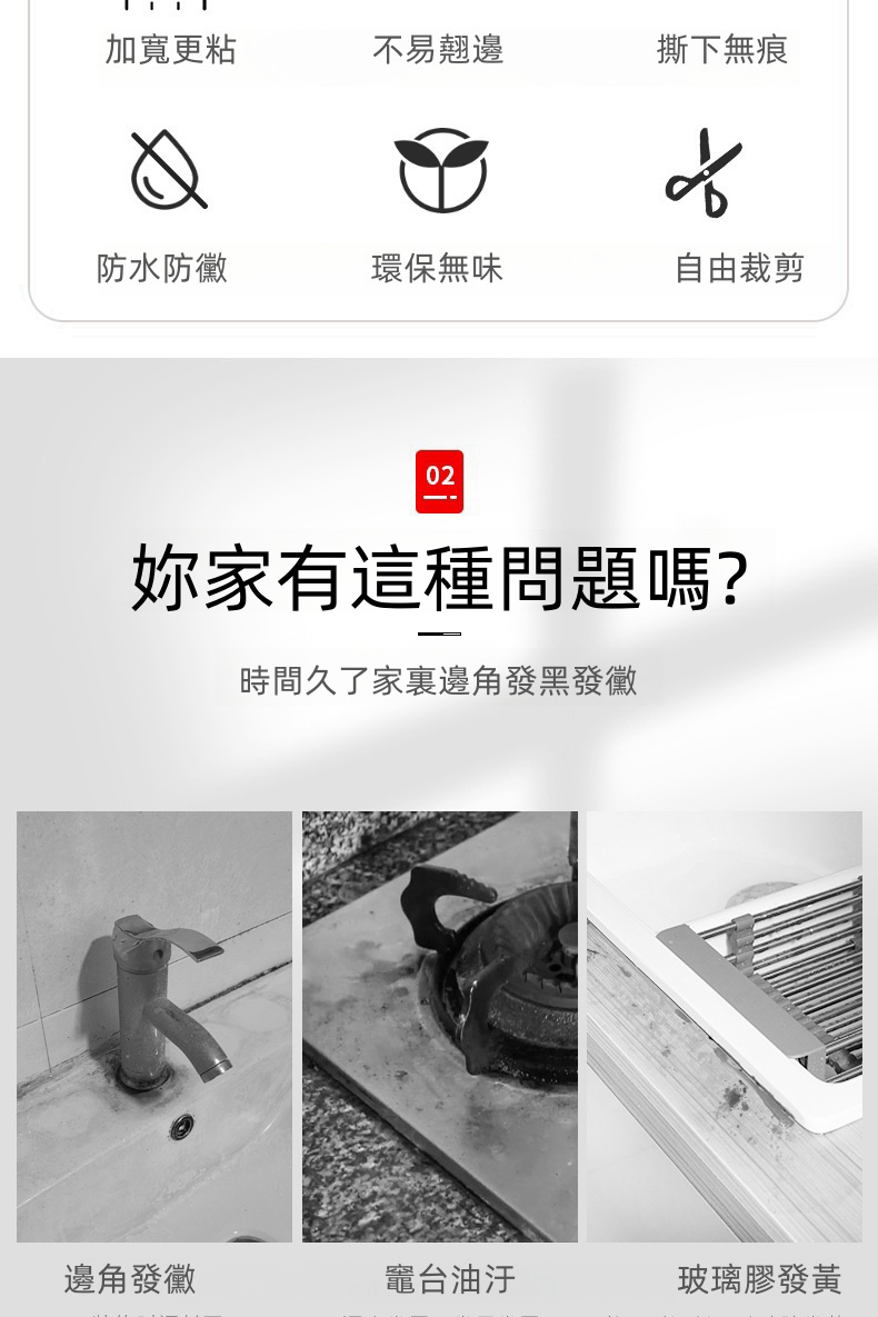 7分鐘前限時搶購 美縫貼防水防霉廚房水槽洗碗灶台封邊擋水條,衛生間馬桶邊緣縫隙貼 - 【嘗鮮價】3入組-NT$980