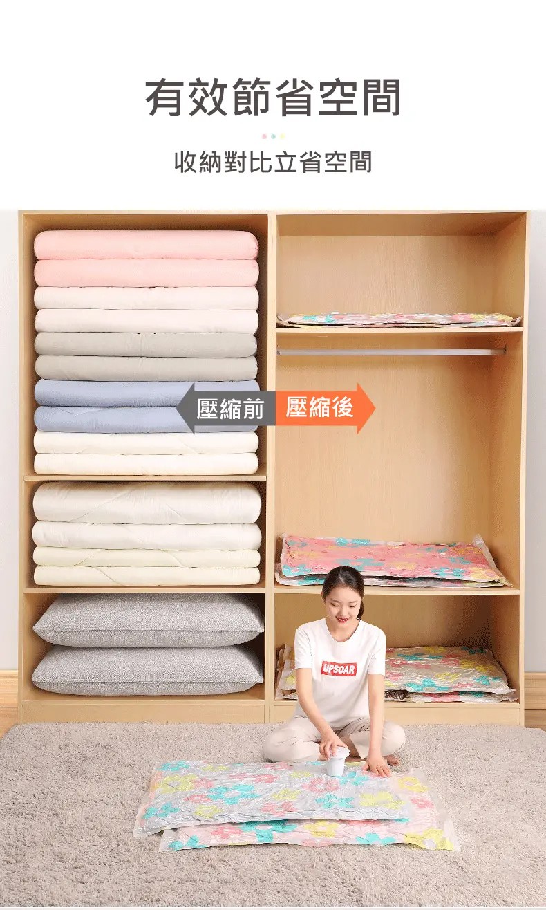 15分鐘前掛式真空壓縮袋推薦,輕鬆節省衣櫃空間 - 【買3送3】尺寸任選★贈電動抽氣機★ NT$999