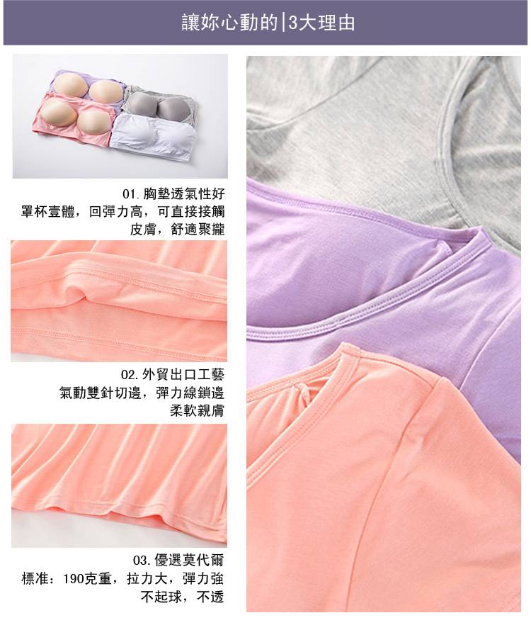 15分鐘前【廠家直銷 買一送一】夏季爆款莫代爾帶胸墊可外穿家居短袖,一體式無鋼圈設計,方便舒適,告別鋼圈束縛,柔軟莫代爾面料,不舒服包退!限時售價!買到賺到 - 【買一送三】任選4件 均價299